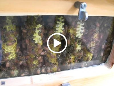 However, they seem to be content with the first 10 bars for the brood nest. The newest combs have been allocated to honey storage. There's been a slight slowdown in construction, but there is a new comb about 6" deep on the 13th bar, and they've been measuring Bars 14-15 for a few days. The slowdown is attributable to the original package bees being mostly gone now, and the new bees just becoming mature enough to produce wax. Since there's plenty of brood comb, the queen can continue to lay uninterrupted, but this could affect the colony's honey-storing capacity.