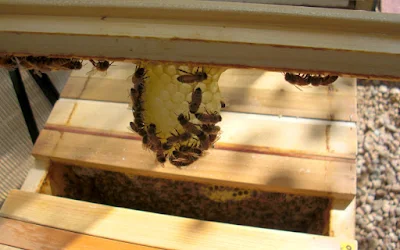 #21: a baby comb. We'll give the bees a few more weeks to finish building out 22 and 21 but if the Fall nectar flow is not strong and they make no progress, we'll pull these combs out of the hive. (Last Winter, we found out that since the honey area is not heated, condensation forms back there and the combs get moldy.)